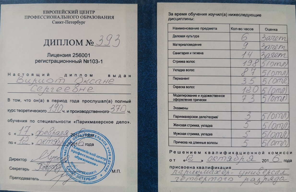 Парикмахерская студия Оксаны Вартик на Витебском проспекте