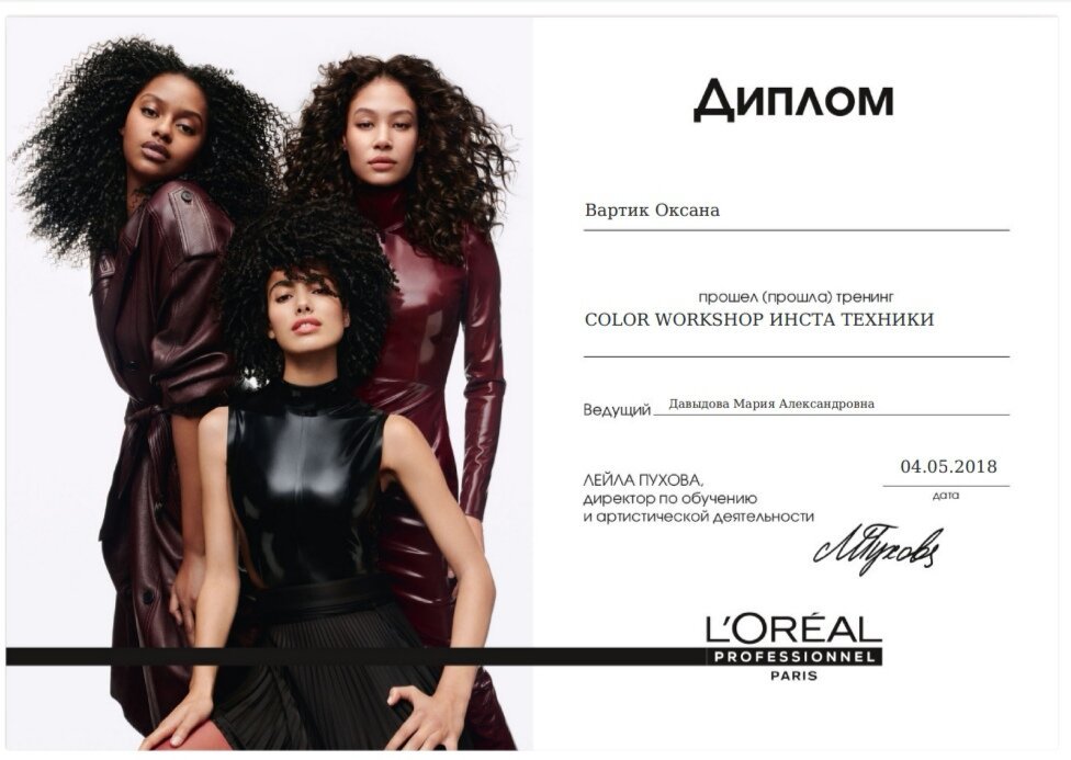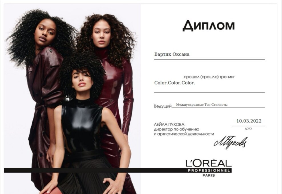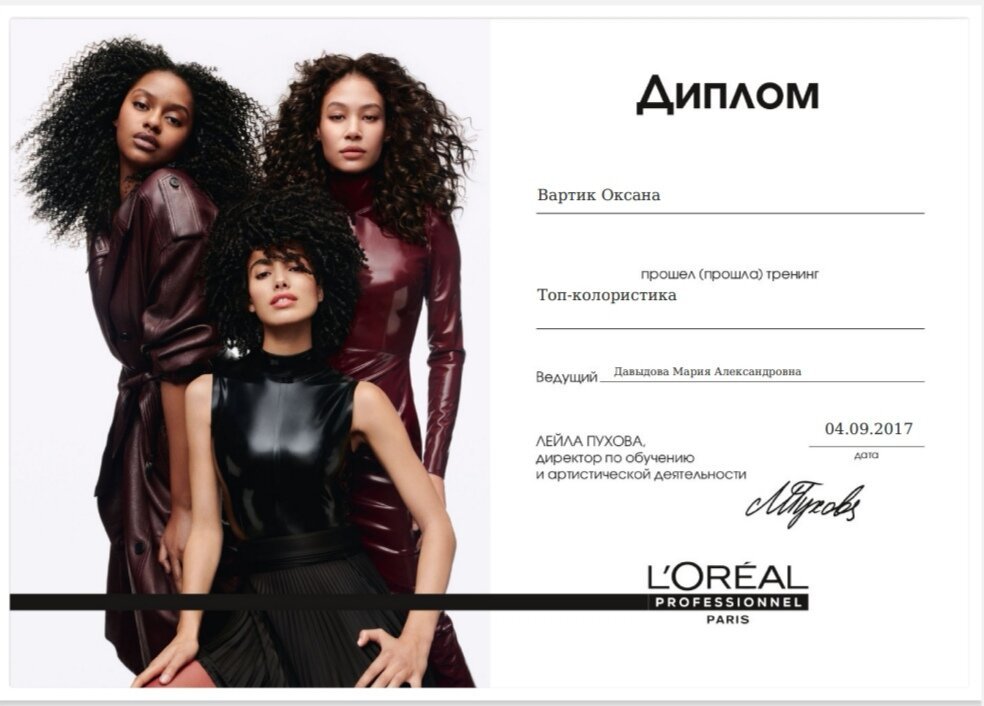 В парикмахерской студии Оксаны Вартик вам также предлагают провести процедуру окрашивания волос. Удачно подобранный цвет локонов преобразит привычную прическу, добавит образу захватывающих красок, поможет сменить имидж. Профессиональные красители и оттеночные средства в руках квалифицированных парикмахеров не только не ухудшат состояние ваших волос, но, наоборот, сделают их более живыми и гладкими, а при определенных условиях даже придадут дополнительный объем - результат, которого вряд ли можно достичь при домашней окраске.